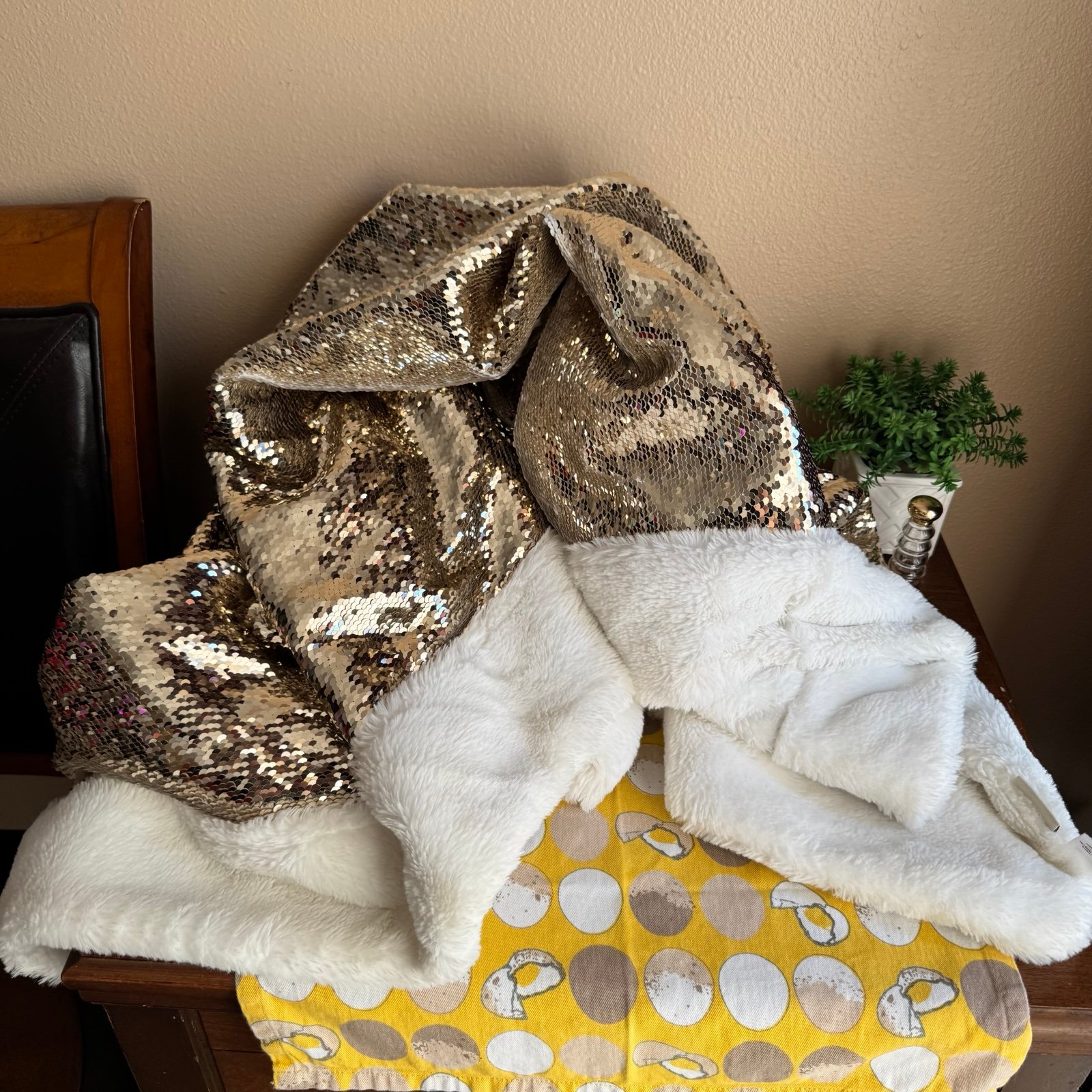 What an absolute luxurious and gorgeous little blanket for the glam lady in your life! In good used condition with no glaring issues to note. Doesn’t appear to be missing many, if any sequins